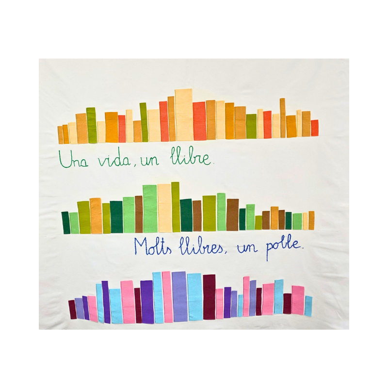 Esta obra está formada por 82 piezas que representan libros ordenados en una estantería. Al mismo tiempo, parecen la vista del horizonte de un pueblo. Y tú ¿qué ves?