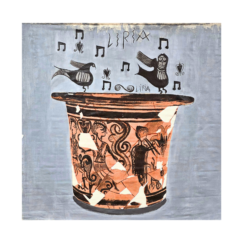 En el borde del recipiente hay una inscripción pintada, no conservada en su totalidad, en la que se puede leer “abartanban balkeuni”. A pesar de que la lengua ibérica permanece intraducible, se ha podido identificar el valor sintáctico y semántico de algunos de sus elementos, en especial de los nombres propios.