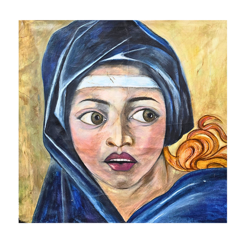 Los cristos que se ven en las iglesias transmiten una sensación muy especial, una mezcla de paz, respeto y algo profundo que siempre me ha impresionado. Hay una emoción particular en el cuadro de Dalí, ese Cristo flotando en el vacío, me ha acompañado desde hace tiempo. Siempre quise replicarlo, y ahora he tenido la oportunidad a través de mi propia pintura.