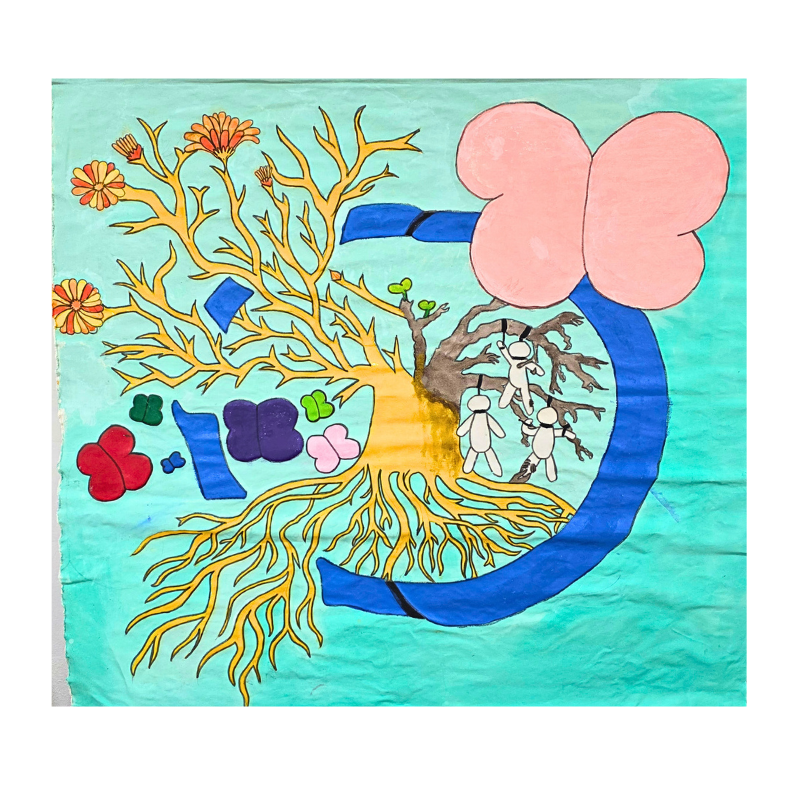 – Ala de la mariposa tapando parte marchita: A veces intentan invisibilizar la salud mental.